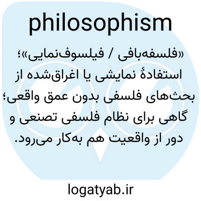 «فلسفه‌بافی / فیلسوف‌نمایی»؛ استفادهٔ نمایشی یا اغراق‌شده از بحث‌های فلسفی بدون عمق واقعی؛ گاهی برای نظام فلسفی تصنعی و دور از واقعیت هم به‌کار می‌رود.