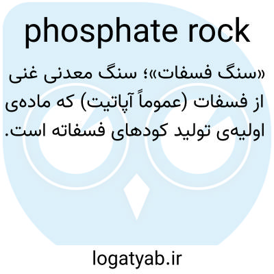 «سنگ فسفات»؛ سنگ معدنی غنی از فسفات (عموماً آپاتیت) که ماده‌ی اولیه‌ی تولید کودهای فسفاته است.