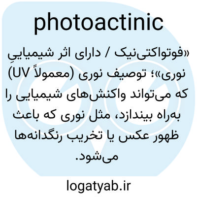 «فوتواکتینیک / دارای اثر شیمیاییِ نوری»؛ توصیف نوری (معمولاً UV) که میتواند واکنشهای شیمیایی را بهراه بیندازد، مثل نوری که باعث ظهور عکس یا تخریب رنگدانهها میشود.