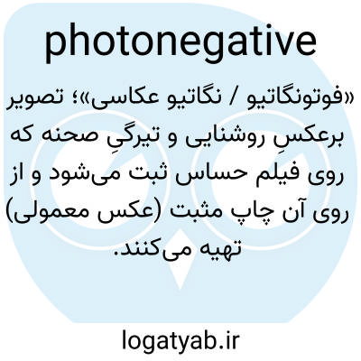 «فوتونگاتیو / نگاتیو عکاسی»؛ تصویر برعکسِ روشنایی و تیرگیِ صحنه که روی فیلم حساس ثبت می‌شود و از روی آن چاپ مثبت (عکس معمولی) تهیه می‌کنند.