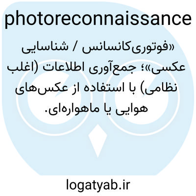 «فوتوری‌کانسانس / شناسایی عکسی»؛ جمع‌آوری اطلاعات (اغلب نظامی) با استفاده از عکس‌های هوایی یا ماهواره‌ای.