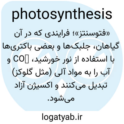 📌 فرآیند پیچیده‌ای که طی آن دی‌اکسید کربن، آب و برخی نمک‌های معدنی توسط گیاهان سبز، جلبک‌ها و برخی باکتری‌ها با استفاده از انرژی خورشید و کلروفیل به کربوهیدرات‌ها تبدیل می‌شوند.