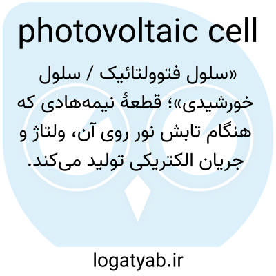«سلول فتوولتائیک / سلول خورشیدی»؛ قطعهٔ نیمه‌هادی که هنگام تابش نور روی آن، ولتاژ و جریان الکتریکی تولید می‌کند.