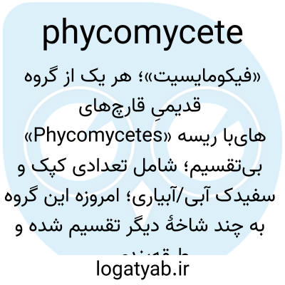 «فیکومایسیت»؛ هر یک از گروه قدیمیِ قارچ‌های «Phycomycetes» با ریسه‌های بی‌تقسیم؛ شامل تعدادی کپک و سفیدک آبی/آبیاری؛ امروزه این گروه به چند شاخهٔ دیگر تقسیم شده و طبقه‌بندی قدیمی است.