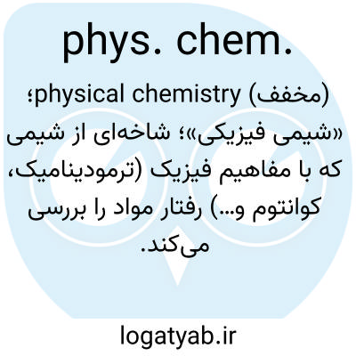 (مخفف) physical chemistry؛ «شیمی فیزیکی»؛ شاخه‌ای از شیمی که با مفاهیم فیزیک (ترمودینامیک، کوانتوم و…) رفتار مواد را بررسی می‌کند.