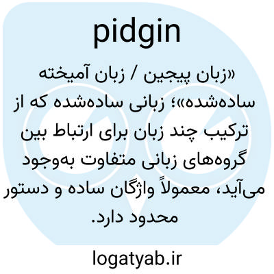 📌 (به طور کلی) هر شکل سادهشده یا شکستهشدهی یک زبان، بهویژه هنگامی که برای ارتباط بین گویشوران زبانهای مختلف استفاده میشود.