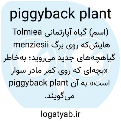 📌 گیاهی به نام Tolmiea menziesii از خانوادهی ساکسیفراژ، بومی غرب آمریکای شمالی، که گیاهان جدیدی را در پایهی برگهای پهن و کرکدار خود تولید میکند و به عنوان گیاه آپارتمانی محبوب است.