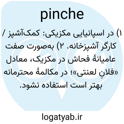 ۱) در اسپانیایی مکزیکی: کمک‌آشپز / کارگر آشپزخانه. ۲) به‌صورت صفت عامیانهٔ فحاش در مکزیک، معادل «فلانِ لعنتی»؛ در مکالمهٔ محترمانه بهتر است استفاده نشود.
