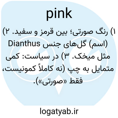 ۱) رنگ صورتی؛ بین قرمز و سفید. ۲) (اسم) گل‌های جنس Dianthus مثل میخک. ۳) در سیاست: کمی متمایل به چپ (نه کاملاً کمونیست، فقط «صورتی»).