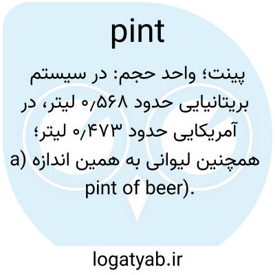 📌 واحد اندازه‌گیری گنجایش مایع و خشک، که به ترتیب برابر با نصف یک کوارت مایع و خشک است، تقریباً 35 اینچ مکعب (0.473 لیتر). pt، pt.