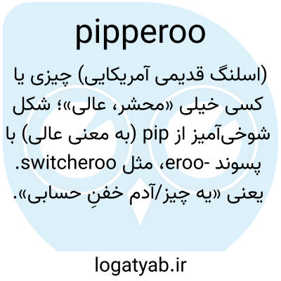 (اسلنگ قدیمی آمریکایی) چیزی یا کسی خیلی «محشر، عالی»؛ شکل شوخی‌آمیز از pip (به معنی عالی) با پسوند -eroo، مثل switcheroo. یعنی «یه چیز/آدم خفنِ حسابی».