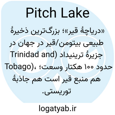 «دریاچهٔ قیر»؛ بزرگ‌ترین ذخیرهٔ طبیعی بیتومن/قیر در جهان در جزیرهٔ ترینیداد (Trinidad and Tobago)، حدود ۱۰۰ هکتار وسعت؛ هم منبع قیر است هم جاذبهٔ توریستی.