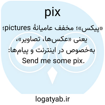 «پیکس»؛ مخفف عامیانهٔ pictures؛ یعنی «عکس‌ها، تصاویر»، به‌خصوص در اینترنت و پیام‌ها: Send me some pix.