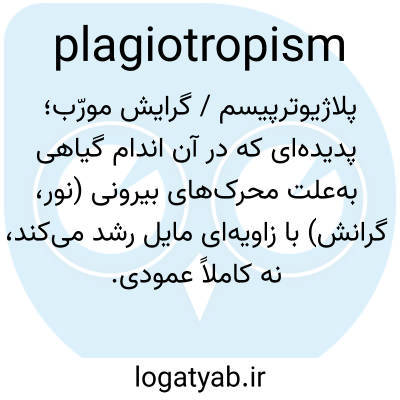 پلاژیوتروپیسم، plā-ji-ot′rō-pizm، اسم. شیوهای از چرخش اندامهای گیاهان در جهت جاذبه یا پرتو نور. - صفت.