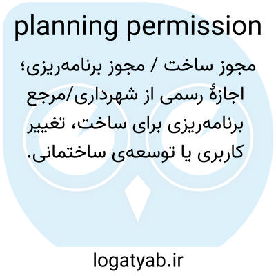 📌 (در بریتانیا) اجازه رسمی که باید قبل از توسعه یا تغییر کاربری زمین یا ساختمان از یک مقام محلی اخذ شود