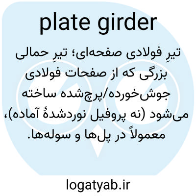 📌 تیر آهن یا فولادی که از صفحات و اشکال جوش داده شده یا پرچ شده به هم ساخته شده است، معمولاً شامل یک یا چند صفحه برای جان تیر، چهار آهن نبشی که دو فلنج را تشکیل میدهند، و یک جفت صفحه برای تقویت فلنجها.