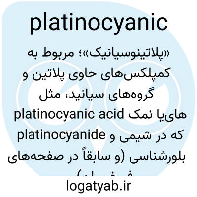 «پلاتینوسیانیک»؛ مربوط به کمپلکس‌های حاوی پلاتین و گروه‌های سیانید، مثل platinocyanic acid یا نمک‌های platinocyanide که در شیمی و بلورشناسی (و سابقاً در صفحه‌های فسفرسان) کاربرد داشته‌اند.