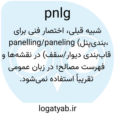 شبیه قبلی، اختصار فنی برای panelling/paneling (پنل‌بندی، قاب‌بندی دیوار/سقف) در نقشه‌ها و فهرست مصالح؛ در زبان عمومی تقریباً استفاده نمی‌شود.