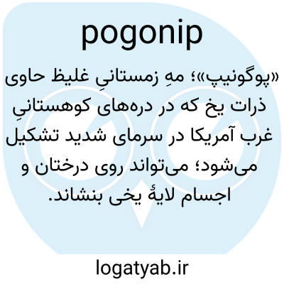 «پوگونیپ»؛ مهِ زمستانیِ غلیظ حاوی ذرات یخ که در دره‌های کوهستانیِ غرب آمریکا در سرمای شدید تشکیل می‌شود؛ می‌تواند روی درختان و اجسام لایهٔ یخی بنشاند.