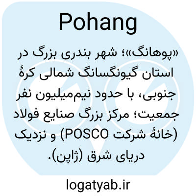 «پوهانگ»؛ شهر بندری بزرگ در استان گیونگسانگ شمالی کرهٔ جنوبی، با حدود نیم‌میلیون نفر جمعیت؛ مرکز بزرگ صنایع فولاد (خانهٔ شرکت POSCO) و نزدیک دریای شرق (ژاپن).