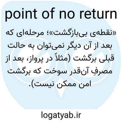📌 هوانوردی، نقطهای در پرواز که در آن هواپیما سوخت کافی برای بازگشت به نقطه شروع خود را ندارد.