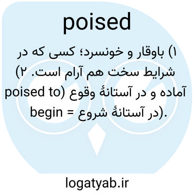 ۱) باوقار و خونسرد؛ کسی که در شرایط سخت هم آرام است. ۲) آماده و در آستانهٔ وقوع (poised to begin = در آستانهٔ شروع).