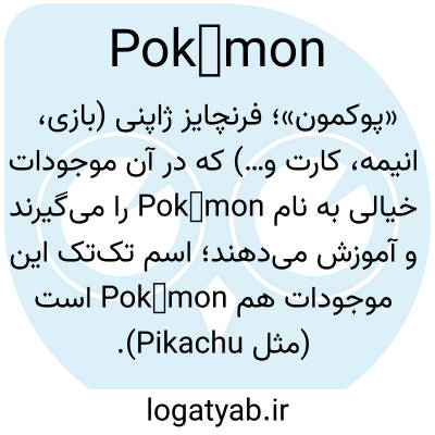 «پوکمون»؛ فرنچایز ژاپنی (بازی، انیمه، کارت و…) که در آن موجودات خیالی به نام Pokémon را می‌گیرند و آموزش می‌دهند؛ اسم تک‌تک این موجودات هم Pokémon است (مثل Pikachu).