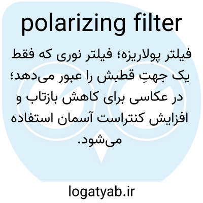 فیلتر پولاریزه؛ فیلتر نوری که فقط یک جهتِ قطبش را عبور می‌دهد؛ در عکاسی برای کاهش بازتاب و افزایش کنتراست آسمان استفاده می‌شود.