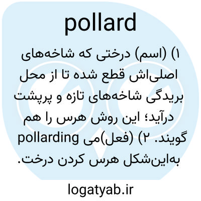💡 As a noun, a pollard is a tree so barbered, or an animal, such as a goat or sheep, that no longer has its horns.