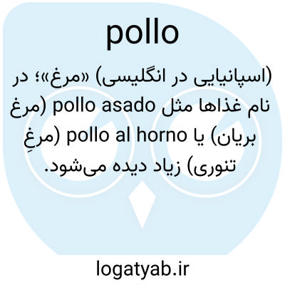 (اسپانیایی در انگلیسی) «مرغ»؛ در نام غذاها مثل pollo asado (مرغ بریان) یا pollo al horno (مرغِ تنوری) زیاد دیده می‌شود.