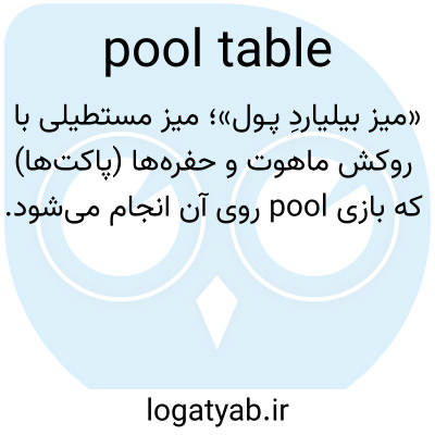 «میز بیلیاردِ پـول»؛ میز مستطیلی با روکش ماهوت و حفره‌ها (پاکت‌ها) که بازی pool روی آن انجام می‌شود.