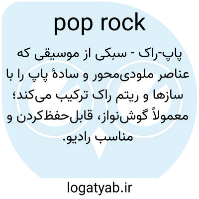 پاپ-راک - سبکی از موسیقی که عناصر ملودی‌محور و ساده‌ٔ پاپ را با سازها و ریتم راک ترکیب می‌کند؛ معمولاً گوش‌نواز، قابل‌حفظ‌کردن و مناسب رادیو.