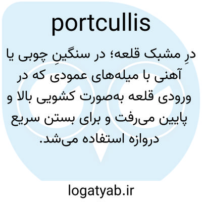 📌 (بهویژه در قلعههای قرون وسطایی) توری محکمی، مانند آهن، که برای لغزش در امتداد شیارهای عمودی در کنارههای دروازهی یک مکان مستحکم ساخته شده و برای جلوگیری از عبور، به پایین رها میشود.