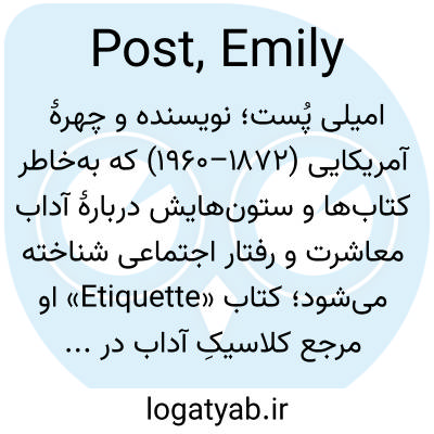 امیلی پُست؛ نویسنده و چهرهٔ آمریکایی (۱۸۷۲–۱۹۶۰) که به‌خاطر کتاب‌ها و ستون‌هایش دربارهٔ آداب معاشرت و رفتار اجتماعی شناخته می‌شود؛ کتاب «Etiquette» او مرجع کلاسیکِ آداب در جامعهٔ آمریکاست.