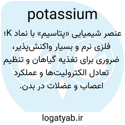 📌 عنصر فلزی سفید نقرهای که به سرعت در هوا اکسید میشود و ترکیبات آن به عنوان کود و در شیشههای سخت مخصوص استفاده میشود. K; 39.102; 19; 0.86 در دمای 20 درجه سانتیگراد.