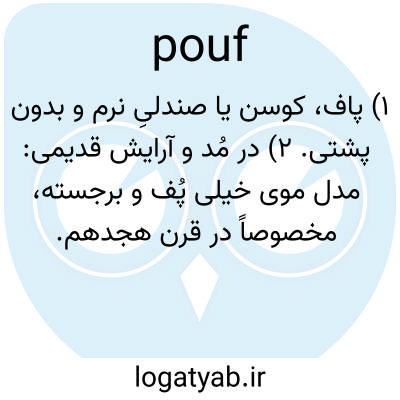 📌 همچنین به آن پاف هم میگویند. یک نشیمنگاه پهن، بدون پشتی، معمولاً گرد و بالش مانند، که اغلب برای چندین نفر به اندازه کافی بزرگ است.