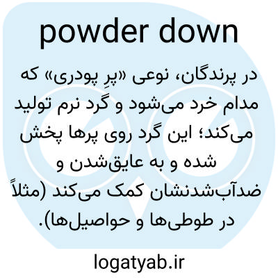 📌 پرهای کرکدار اصلاحشدهای که دائماً از نوک میریزند و پودر ریزی تولید میکنند که روی پرهای برخی پرندگان، مانند کبوتر و حواصیل، شکوفه ایجاد میکند.