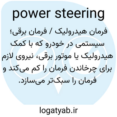 📌 نوعی سیستم فرمان خودرو که در آن از قدرت موتور برای تکمیل نیروی راننده در چرخاندن فرمان استفاده می‌شود.