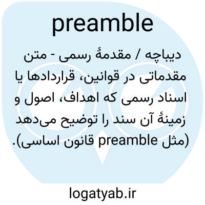 📌 بخش مقدماتی یک قانون، سند یا موارد مشابه، که دلایل و هدف آنچه در ادامه میآید را بیان میکند.