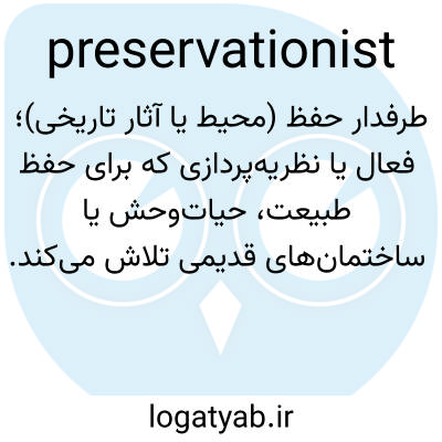 📌 شخصی که از حفاظت از محیط زیست، به ویژه حیات وحش، مناطق طبیعی یا مکانهای تاریخی حمایت یا آن را ترویج میکند.