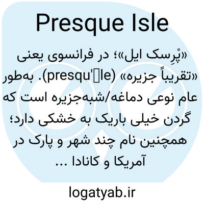 «پْرِسک ایل»؛ در فرانسوی یعنی «تقریباً جزیره» (presqu'île). به‌طور عام نوعی دماغه/شبه‌جزیره است که گردن خیلی باریک به خشکی دارد؛ همچنین نام چند شهر و پارک در آمریکا و کانادا (مثل Presque Isle State Park در پنسیلوانیا).