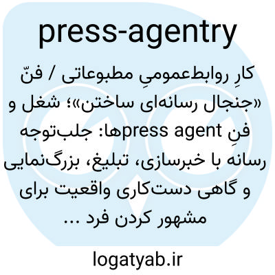 📌 تبلیغاتی که توسط کار یا مهارت یک نماینده مطبوعات ایجاد میشود، به خصوص در مطلوبتر، تحسینبرانگیزتر یا موفقتر جلوه دادن یک شخص یا چیز.