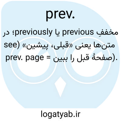 مخففِ previous یا previously؛ در متن‌ها یعنی «قبلی، پیشین» (see prev. page = صفحهٔ قبل را ببین).