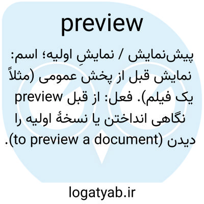 📌 نمایش اولیه یک فیلم سینمایی، تئاتر و غیره، قبل از افتتاحیه عمومی آن.