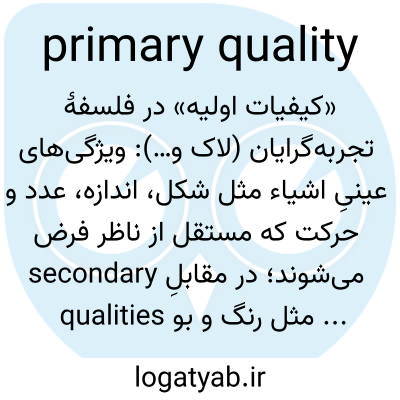 📌 هر یک از کیفیات ذاتی یک شیء، یعنی کمیت، وسعت، شکل، استحکام، و حرکت یا سکون.