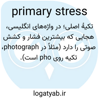 تکیهٔ اصلی؛ در واژه‌های انگلیسی، هجایی که بیشترین فشار و کشش صوتی را دارد (مثلاً در photograph، تکیه روی pho است).