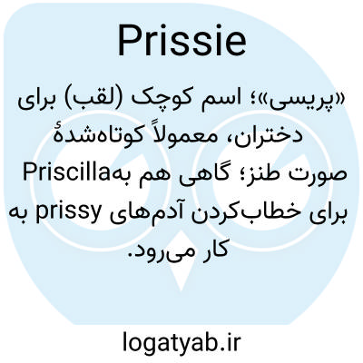 «پریسی»؛ اسم کوچک (لقب) برای دختران، معمولاً کوتاه‌شدهٔ Priscilla؛ گاهی هم به‌صورت طنز برای خطاب‌کردن آدم‌های prissy به کار می‌رود.
