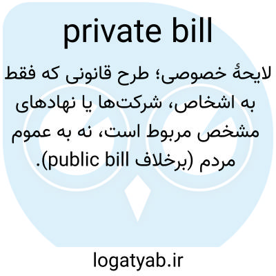 📌 لایحهای از کنگره یا مجلس که شامل منافع خصوصی یک فرد، شرکت یا واحد محلی خاص میشود.