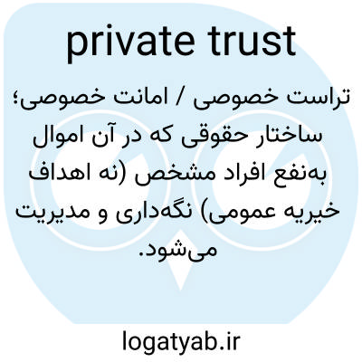 تراست خصوصی / امانت خصوصی؛ ساختار حقوقی که در آن اموال به‌نفع افراد مشخص (نه اهداف خیریه عمومی) نگه‌داری و مدیریت می‌شود.