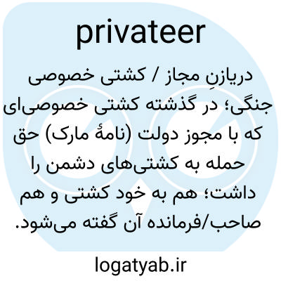 📌 یک کشتی مسلح که متعلق به بخش خصوصی است و توسط یک دولت برای مبارزه یا آزار و اذیت کشتی‌های دشمن مأموریت داده شده است.